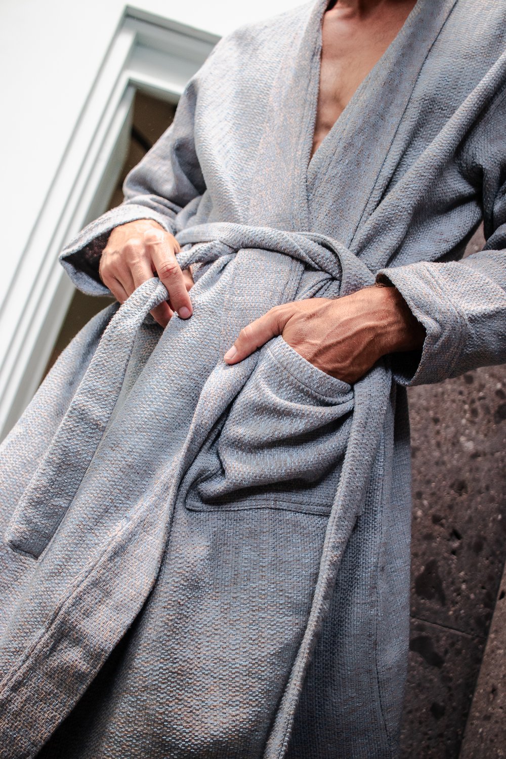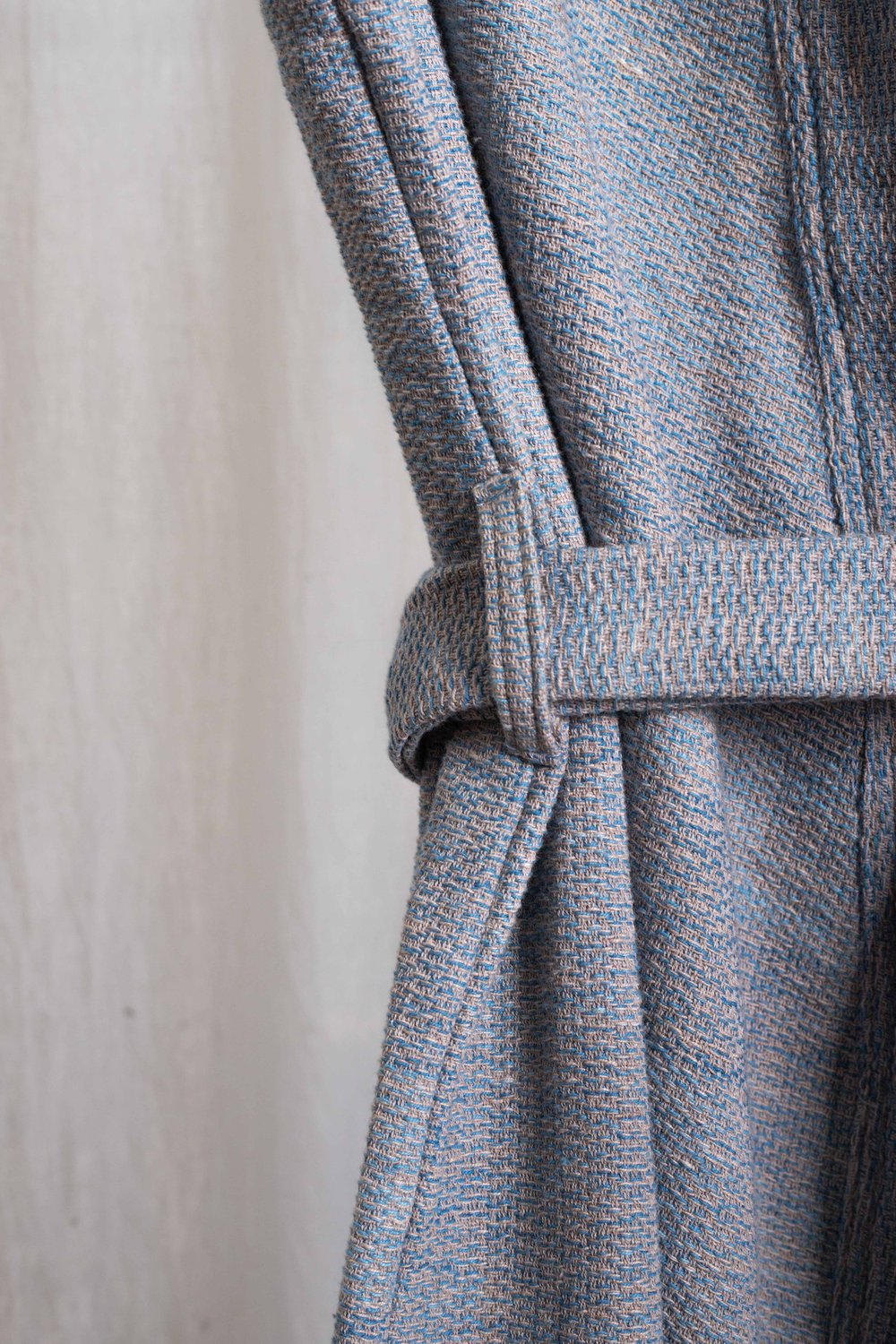 Manta tejida en telar de pedal con algodón natural, tinte natural de nogal y huizache.