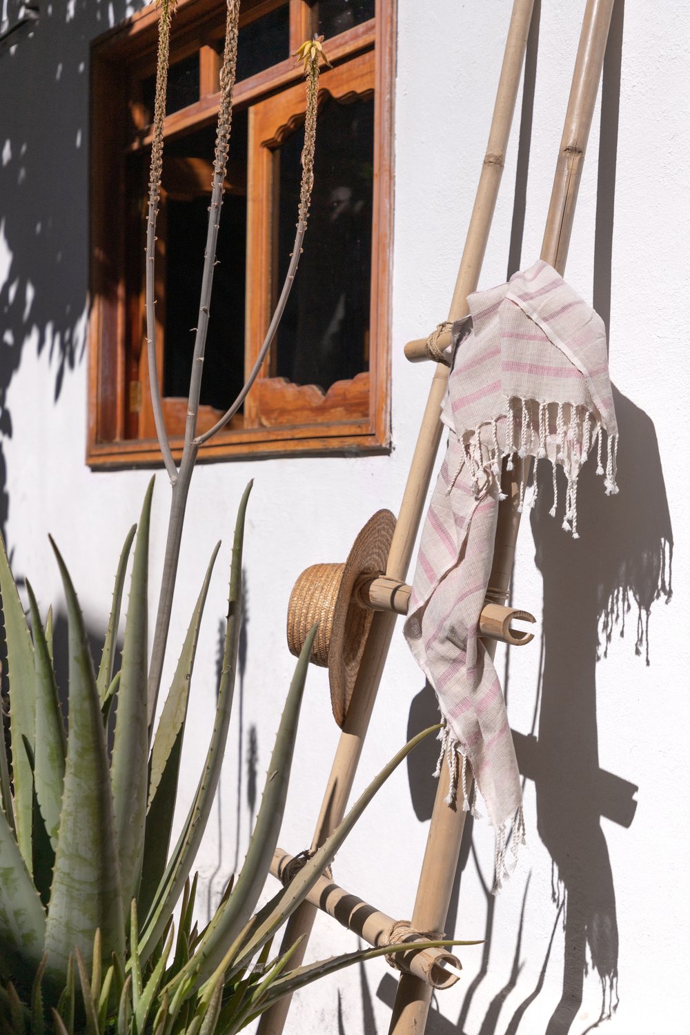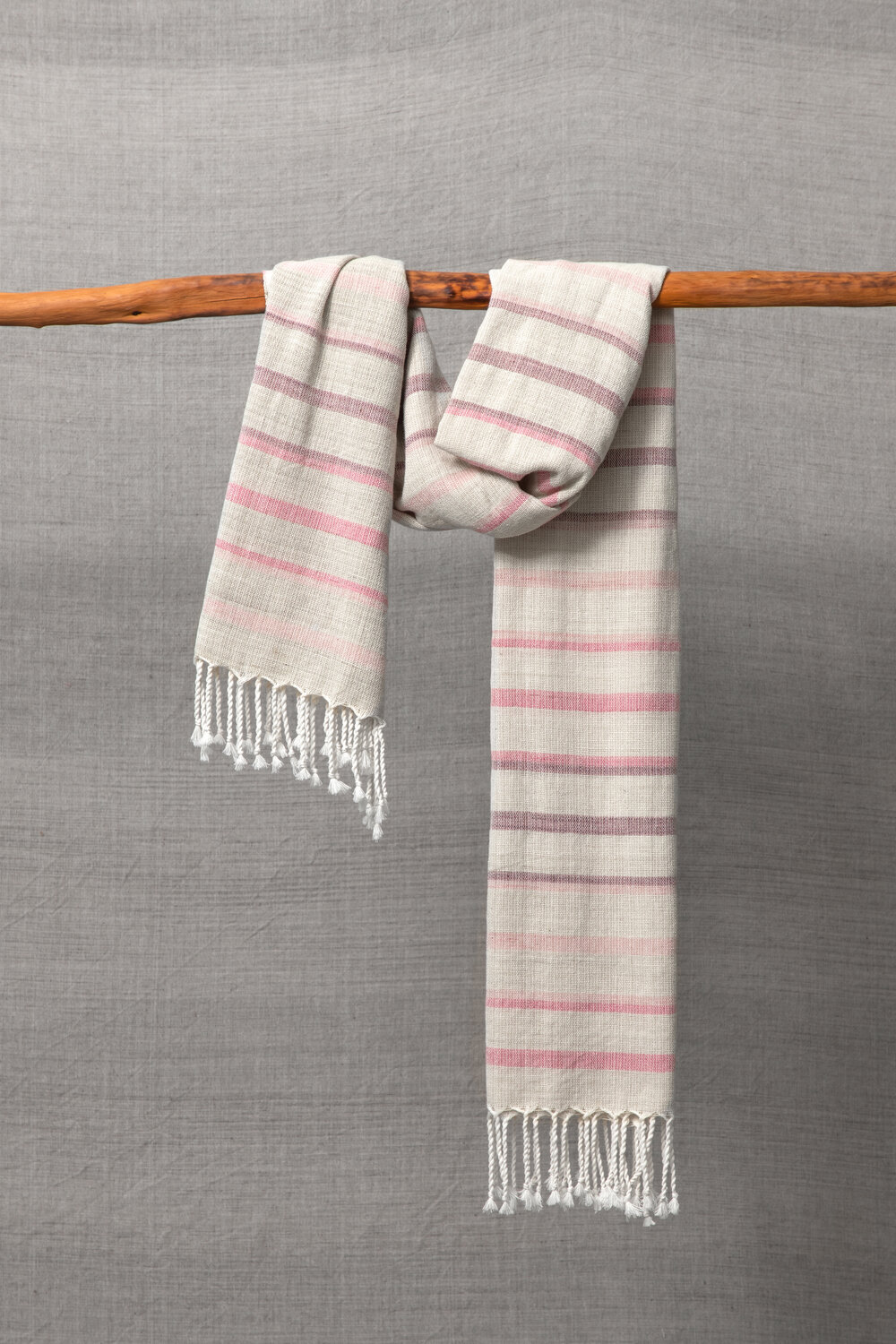 Tejida en telar de pedal en algodón con tintes de nogal, cochinilla.