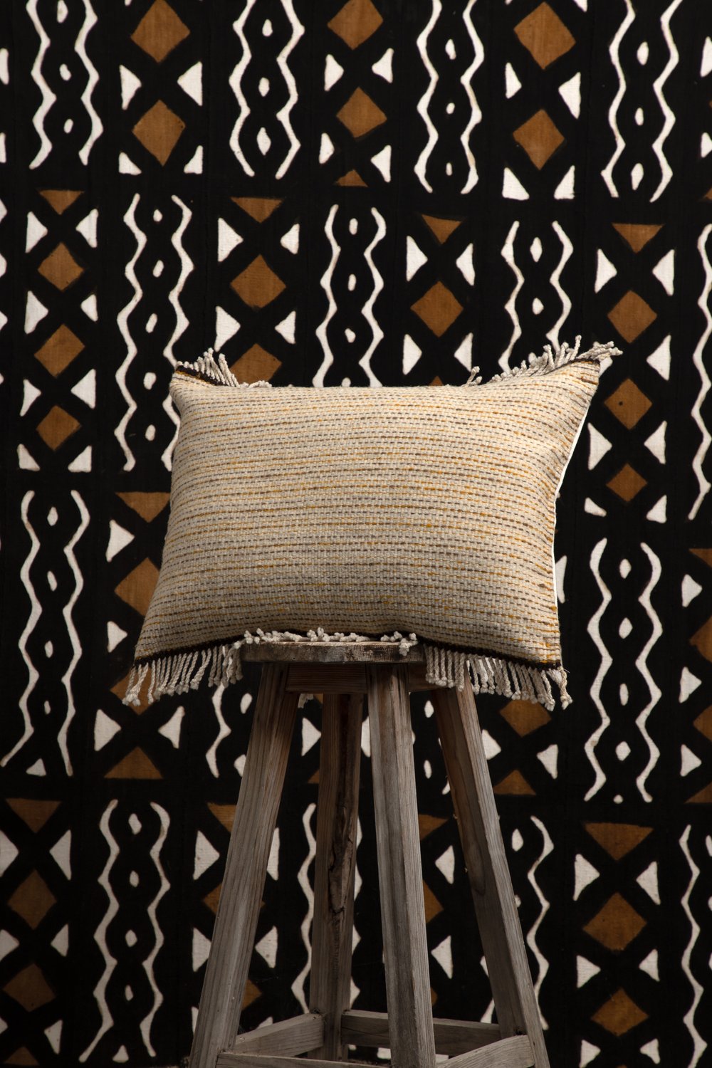 Tejido en telar de pedal en lana natural y tinte natural de grana cochinilla.