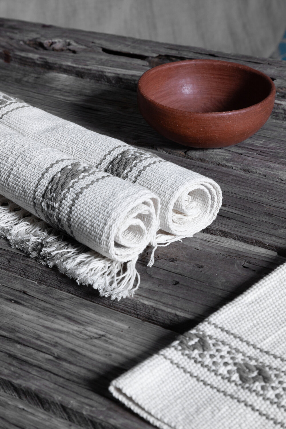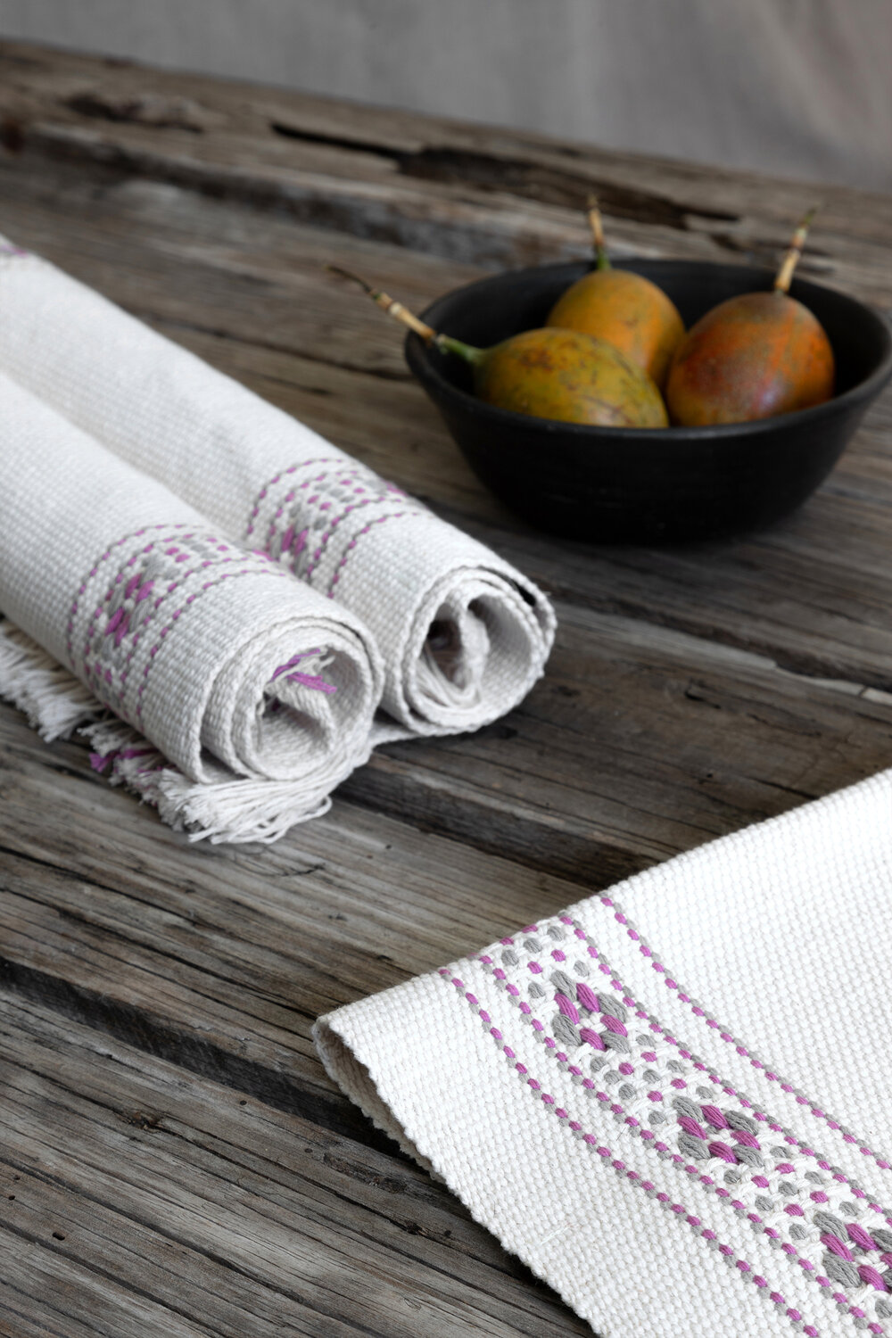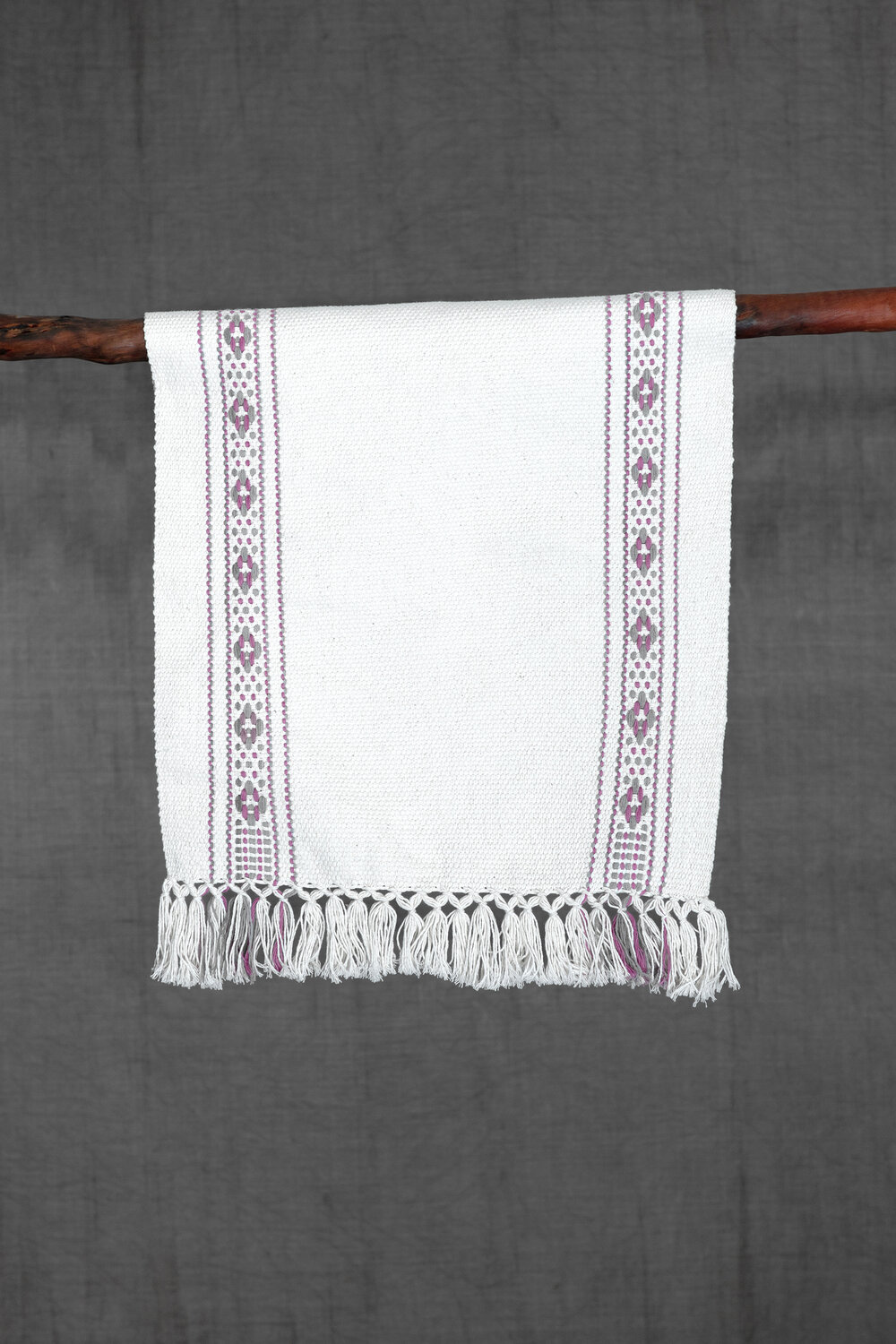 tejida en telar de cintura en algodón con tinte natural de grana cochinilla.
