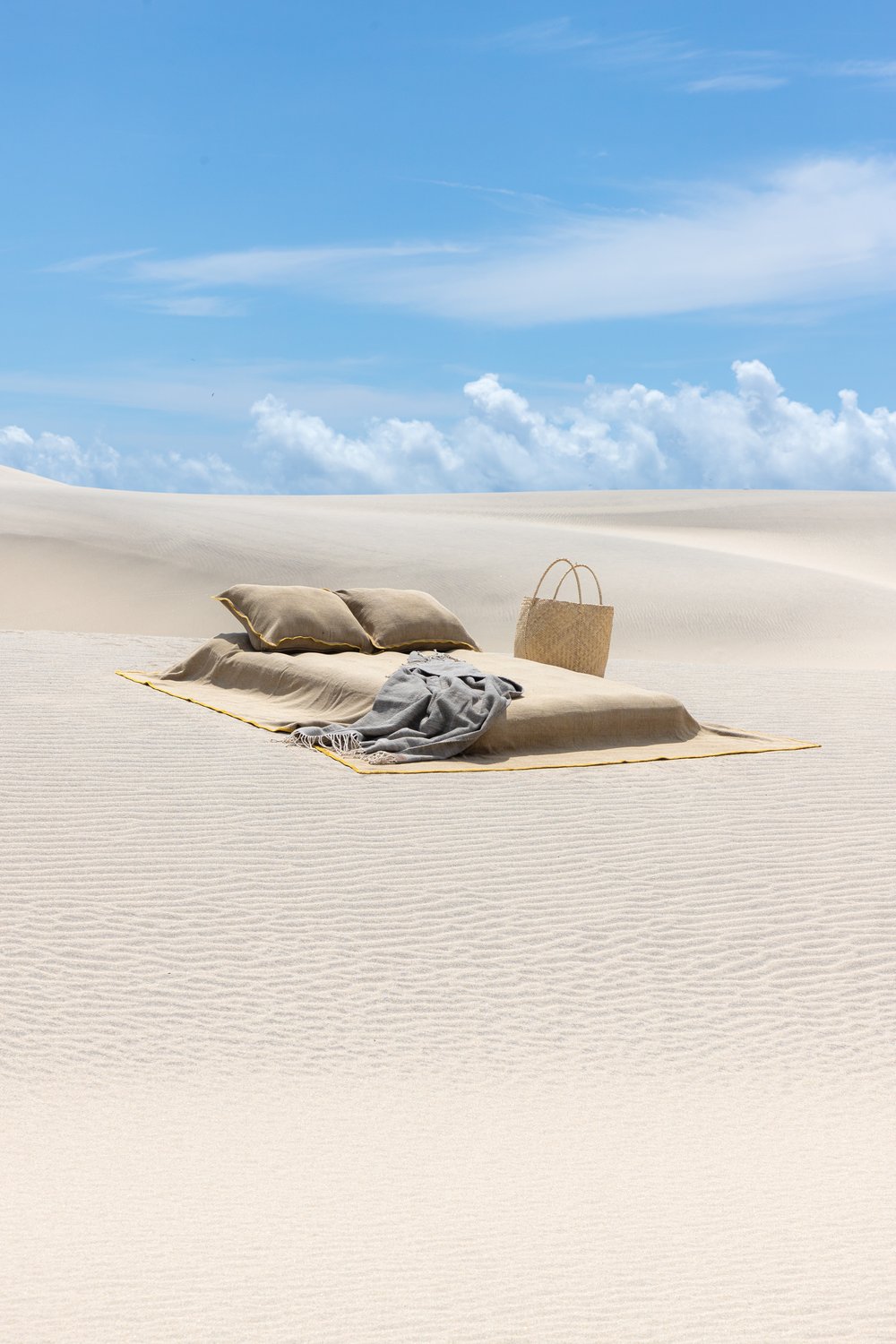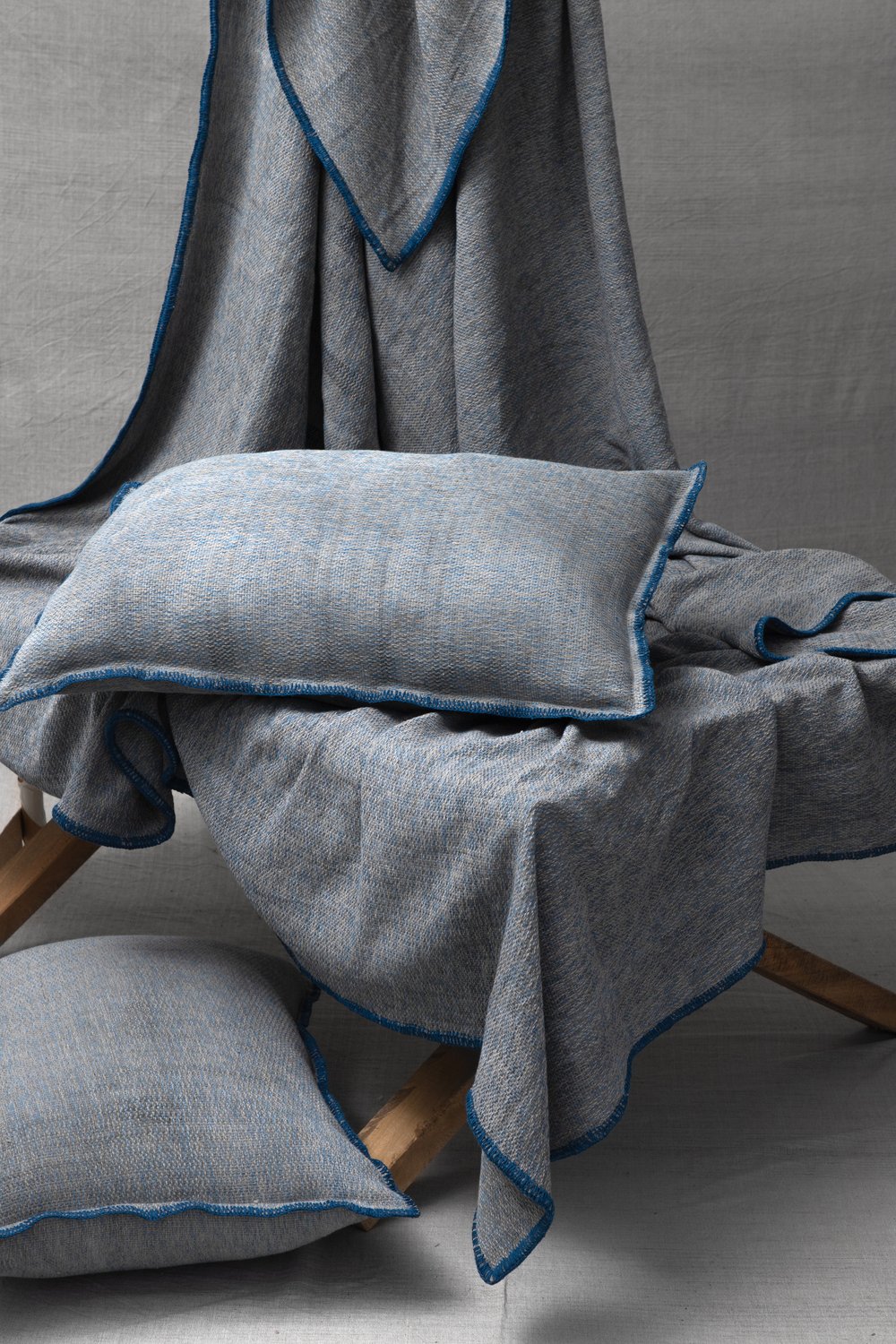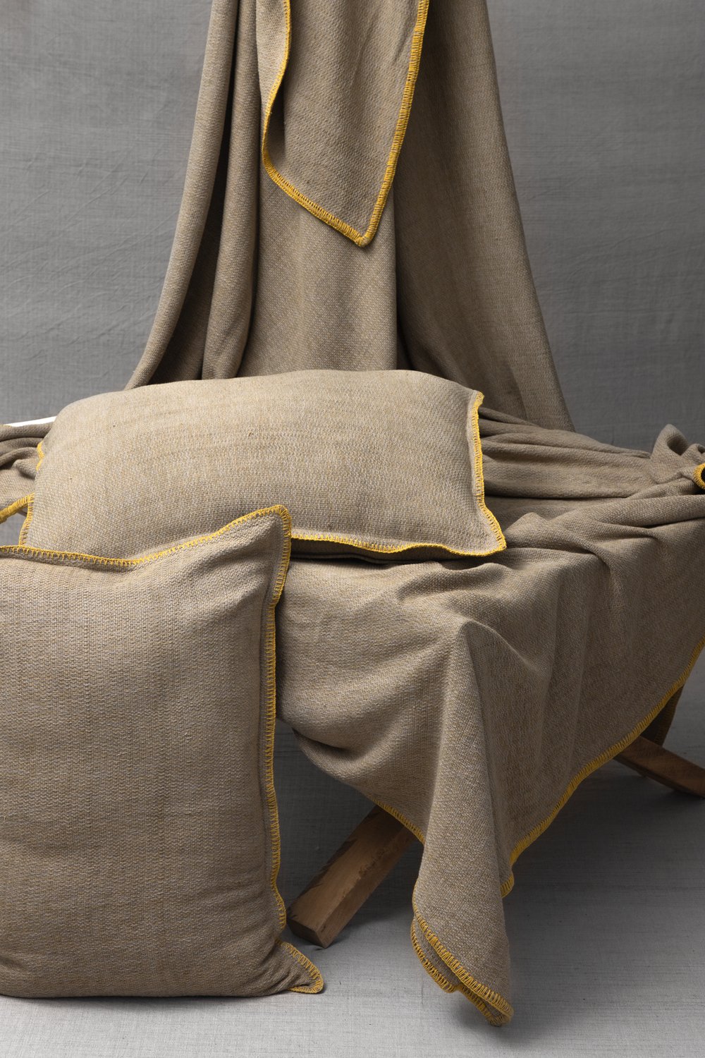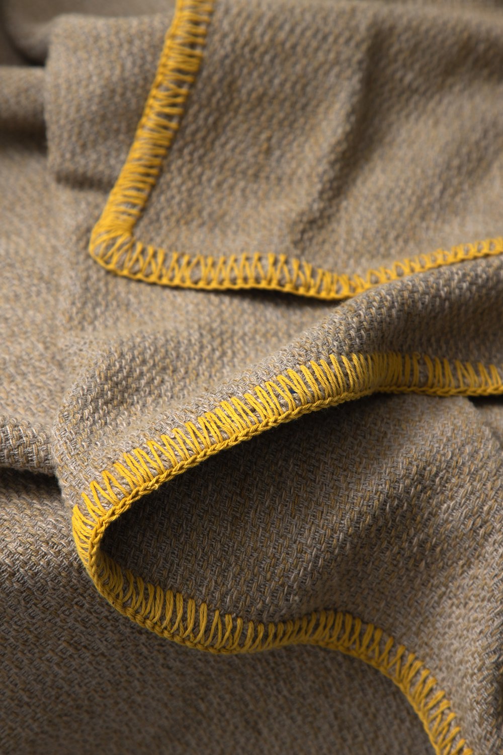 Manta tejida en telar de pedal con tintes naturales de pericon, granada y nogal.