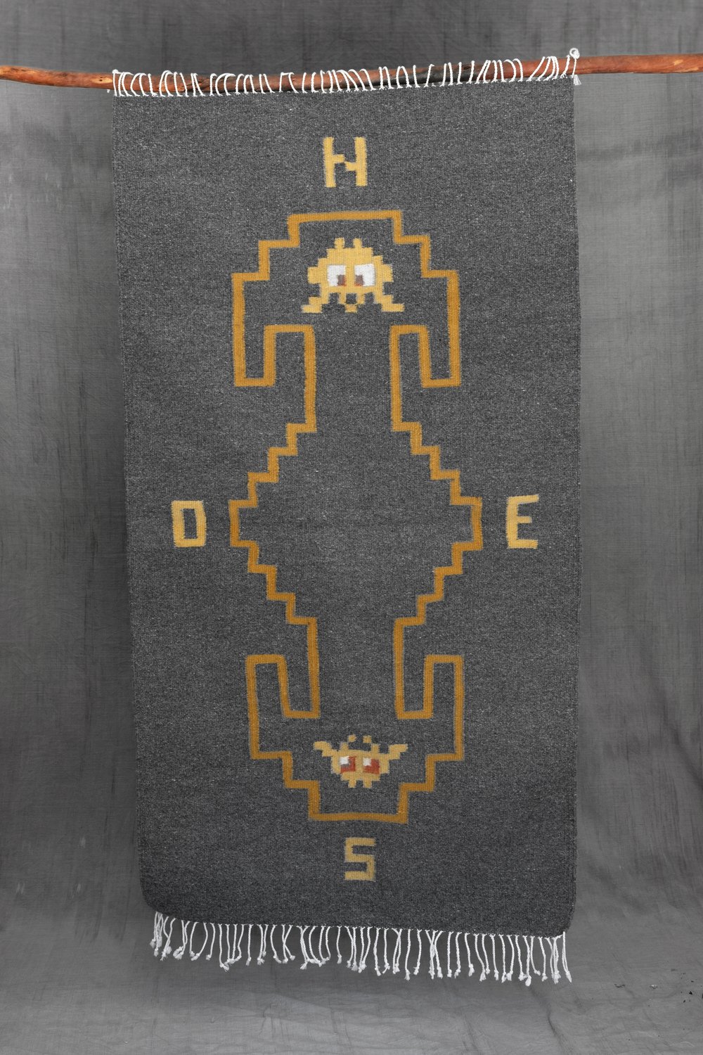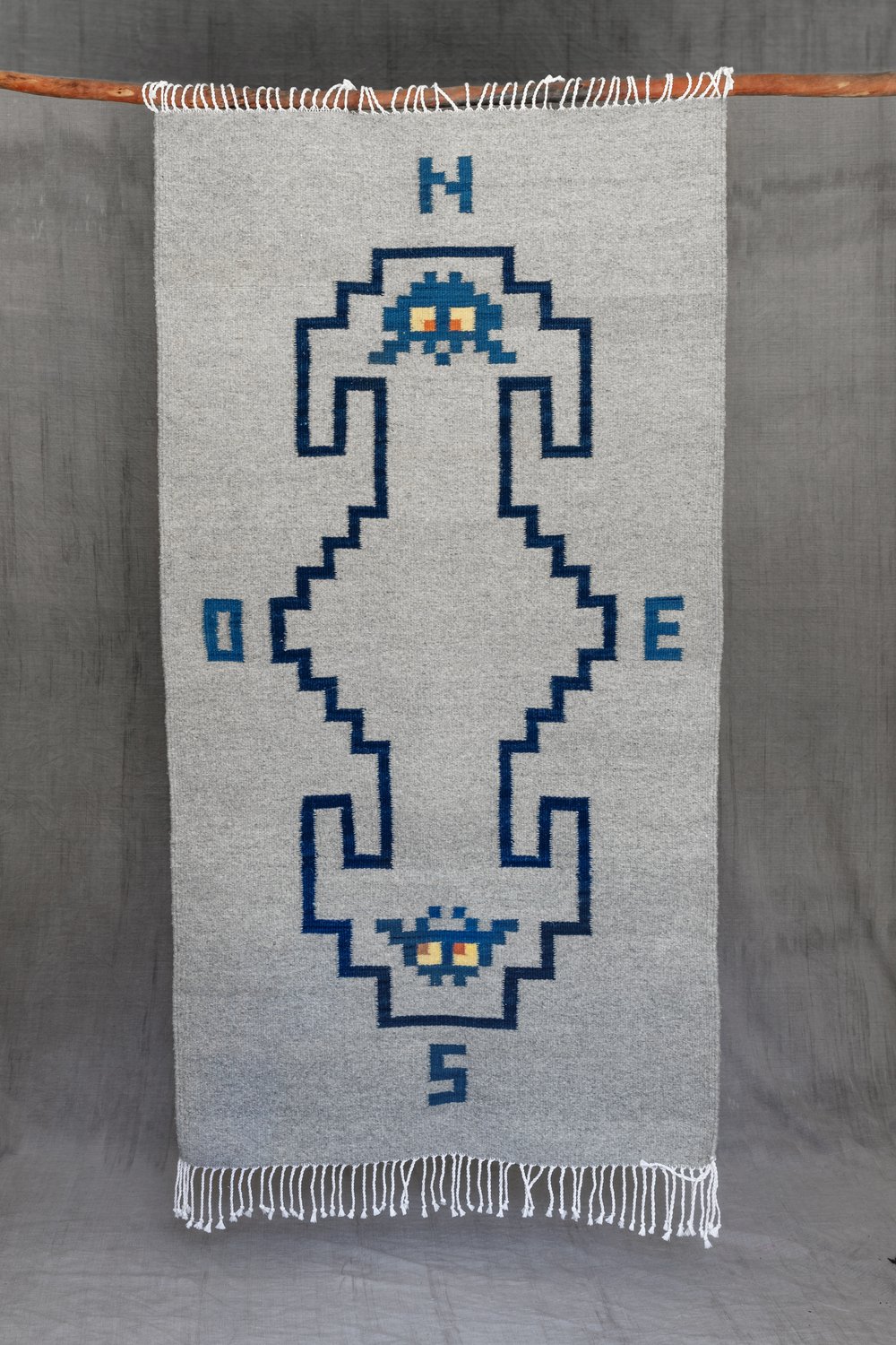 Tejido en telar de pedal con lana natural y tinte natural de pericon.